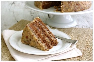 The German Chocolate Cake have our homemade german chocolate frosting with chopped pecans and shredded sweetened coconut.
